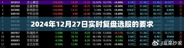 随着金融市场的日益繁荣,投资者对于选股的要求也日益精细,特别是在重要的时间节点,如2024年12月27日,实时复盘选股显得尤为重要,本文将详细阐述在这一日期实时复盘选股的关键要求,帮助投资者更好地把握市场动态,提高投资成功率。