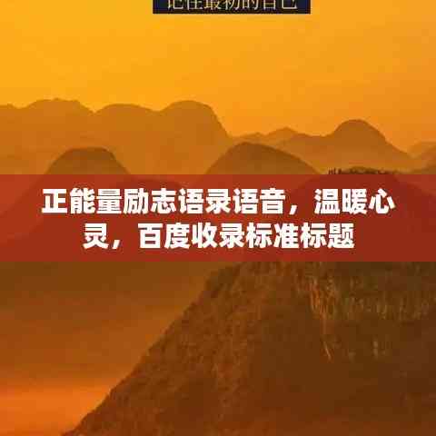 在这个充满挑战与机遇的时代,我们时常需要一些励志的话语来鼓舞自己的士气,正能量暖心励志语录,如同温暖的阳光,照亮我们前行的道路,下面,就让我们一起通过语音的形式,感受这些充满力量的语句。