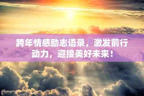 又是一年辞旧迎新时,我们带着满怀的期待和激动的心情迎接新的一年,在这跨年的时刻,让我们一起用情感励志语录来鼓舞自己,展望未来的美好。