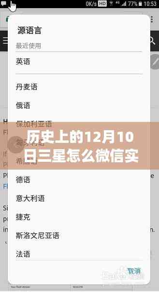 摘要:历史上的12月10日,三星微信实时翻译功能探秘小巷深处的神秘应用。这家特色小店的故事引人关注,通过实时翻译功能,人们可以轻松地与不同语言的人交流。本文将介绍这一功能的背后故事以及它在日常生活中的实际应用价值。
